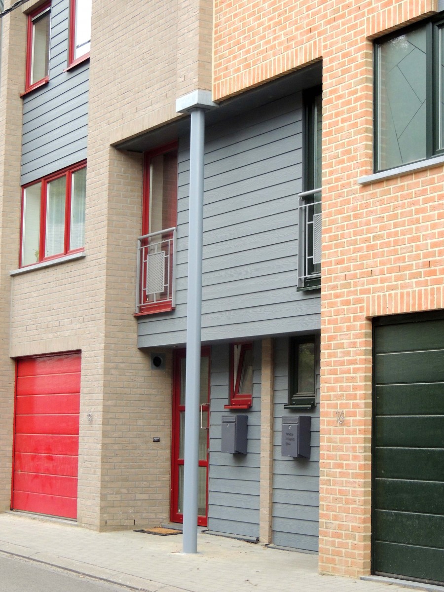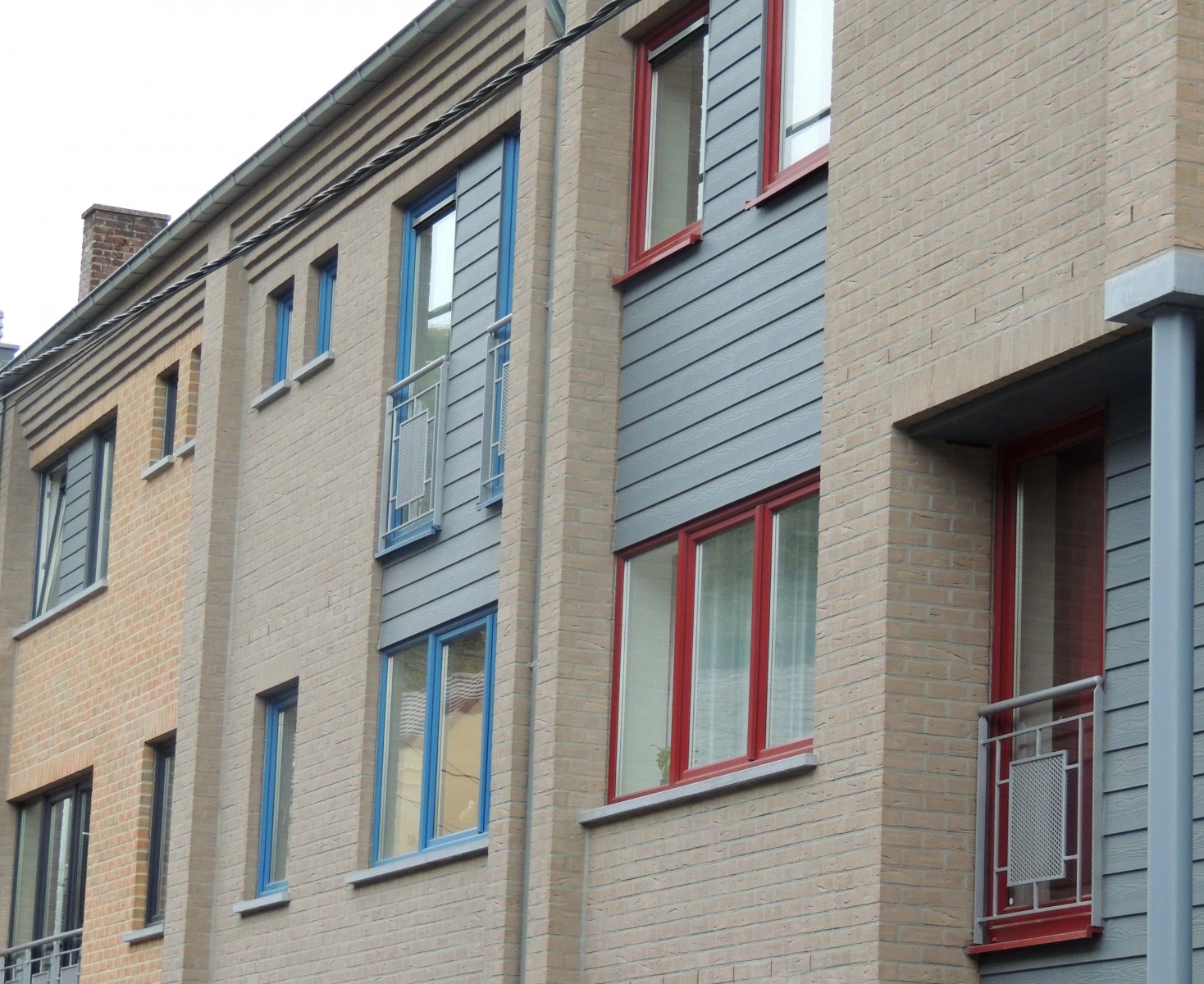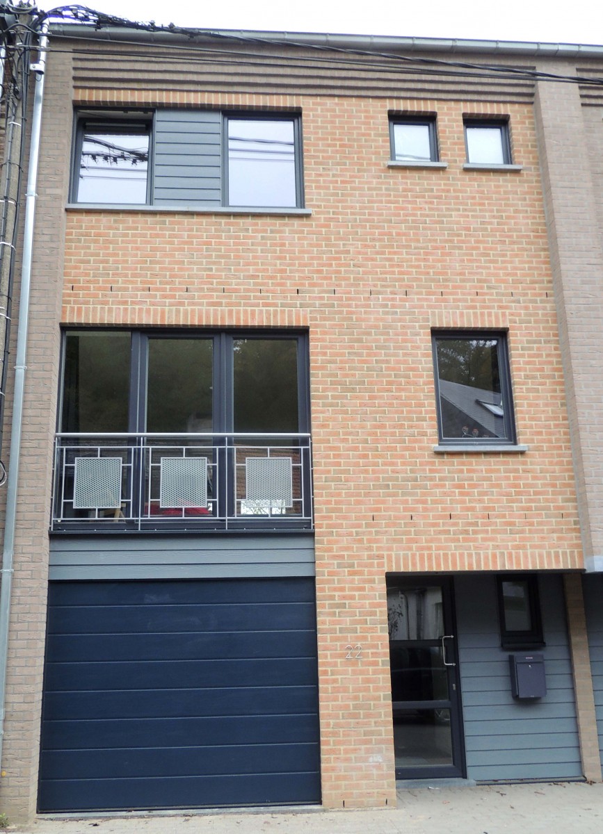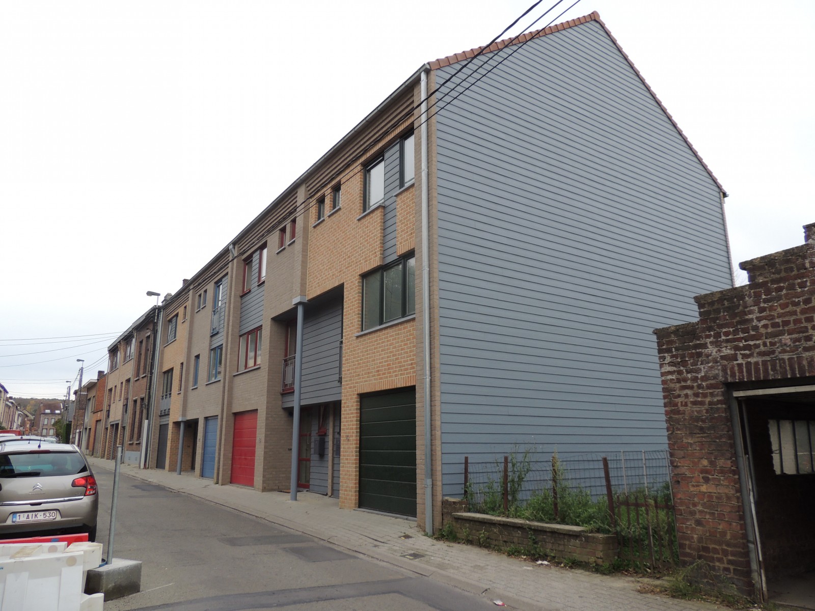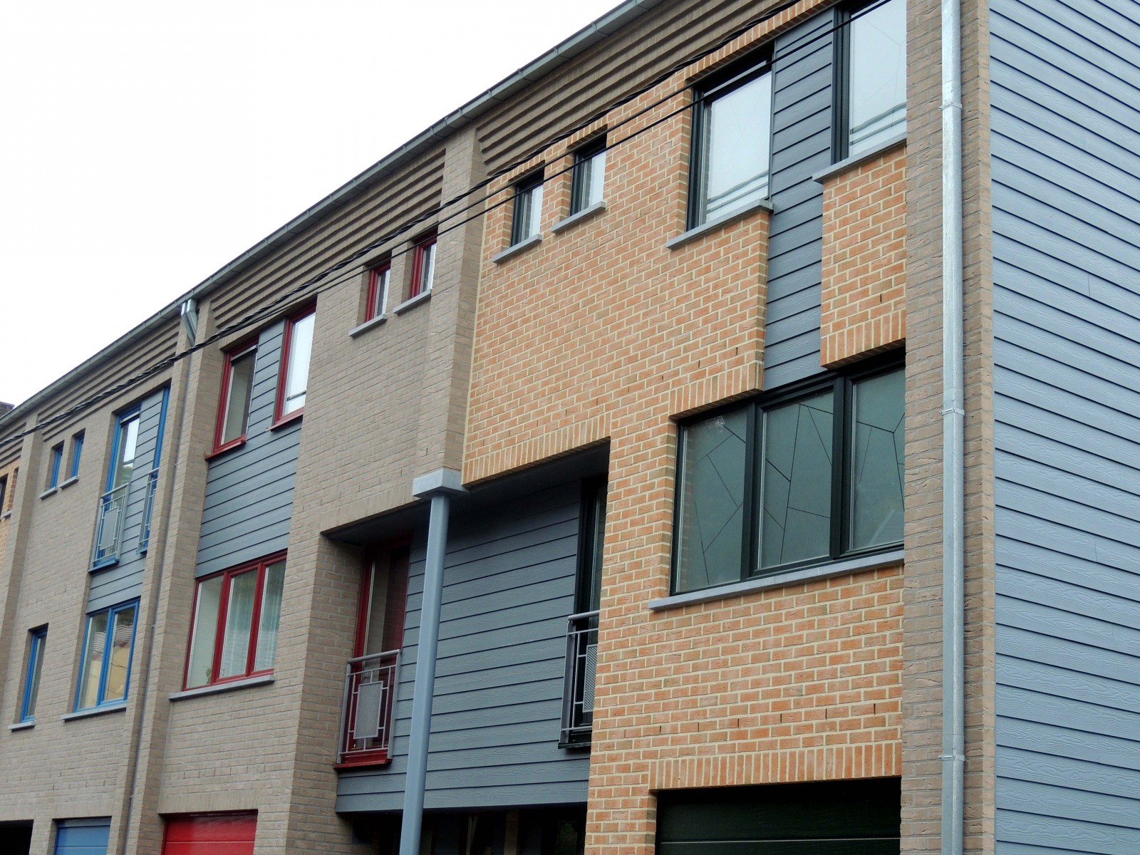 Quatre nouvelles habitations unifamiliales en lieu et place d'anciens garages. Elles ont le même gabarit que les autres maisons dans la rue. Un jeu de matières, de couleur et de renfoncement a été travaillé en façade arrière et avant afin de différencier les maisons de l'extérieur.
